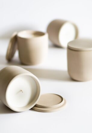 Green Tea Scented Soy Candle – Wooden Wick Candle In Concrete Jar