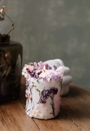 Botanical Dried flower candle, pressed flowers candle, Birthday gift for her, Favors candles