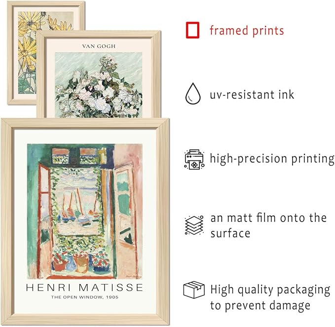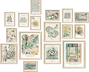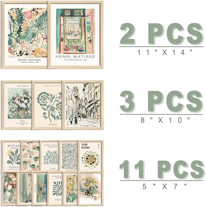 16 PCS Framed Sage Green Wall Art Decor, Matisse Wall Prints for Bedroom