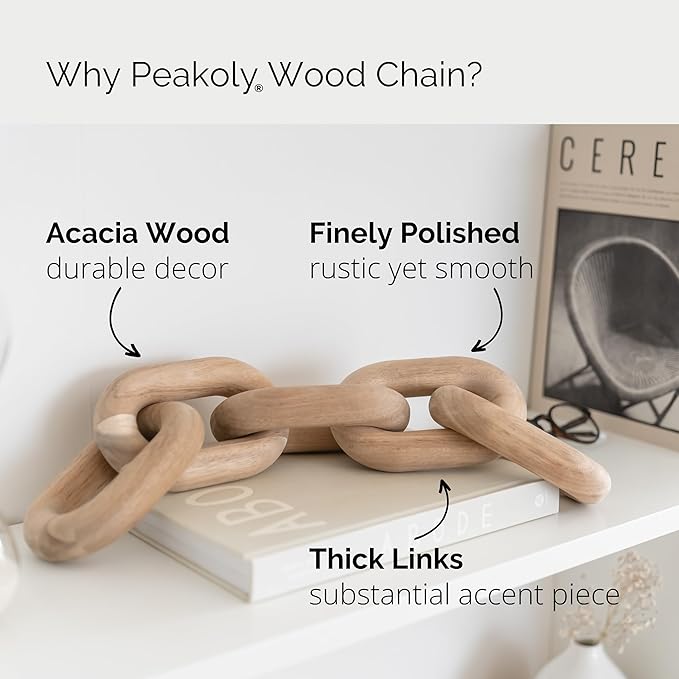 <li class="a-spacing-mini"><span class="a-list-item">☑️SUBSTANTIAL acacia wood decorative chain. Swap between mantle, book shelf, entryway table decor and desk. Move your accessories between living room, home office, guest room and family room for a fresh new look!</span></li>