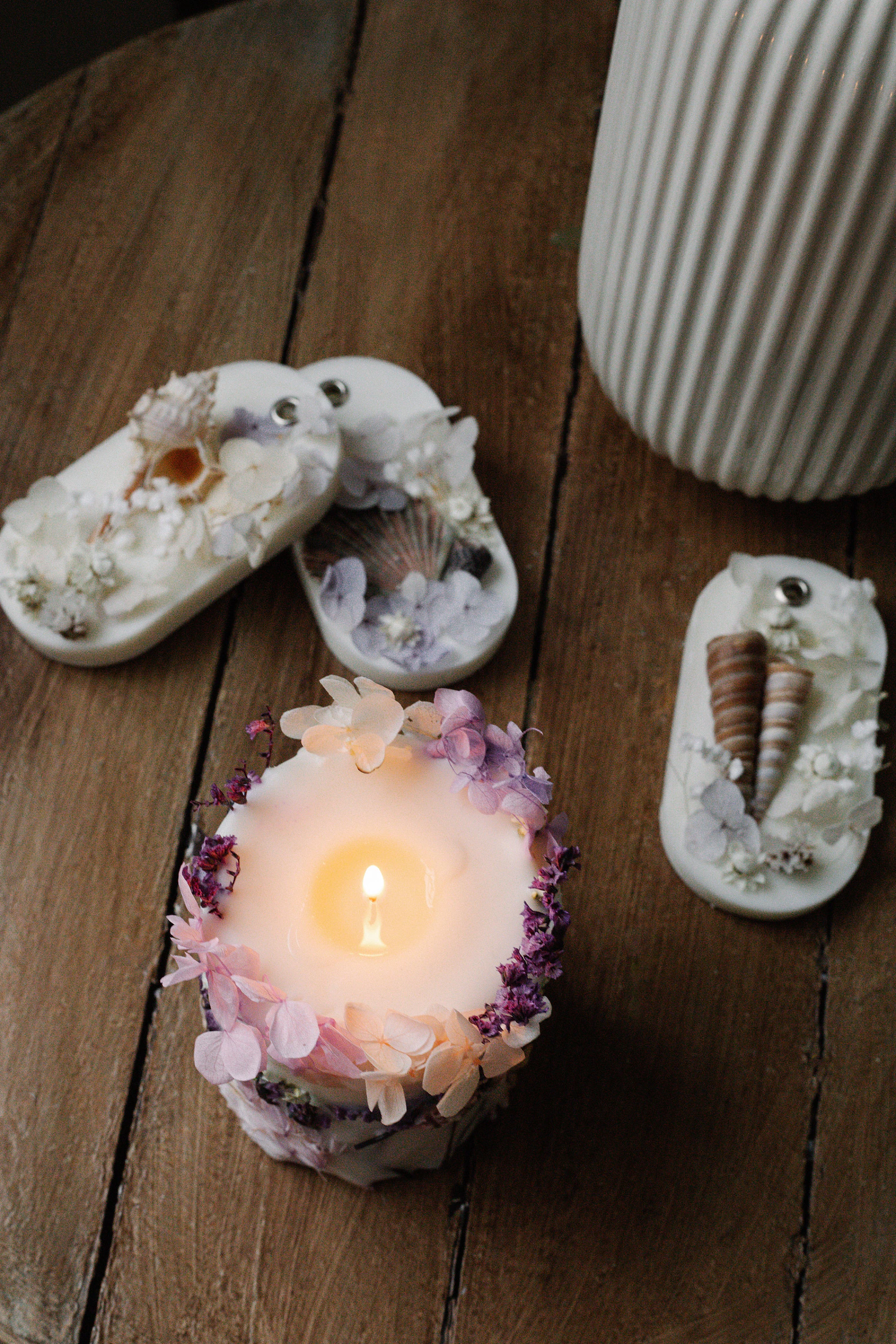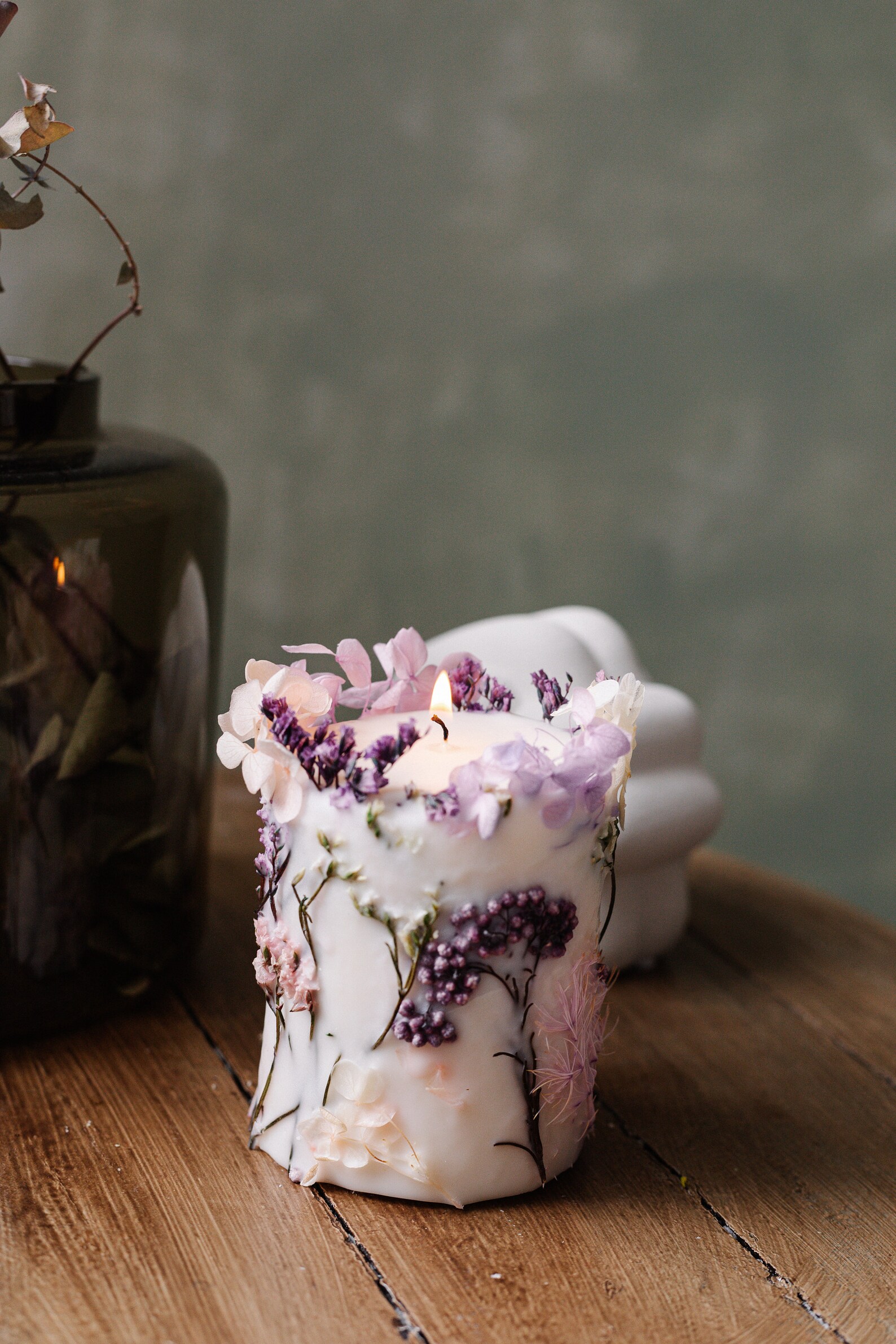 Botanical Dried flower candle, pressed flowers candle, Birthday gift for her, Favors candles