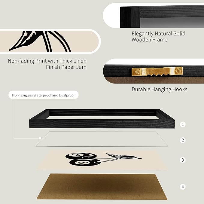<li class="a-spacing-mini"><span class="a-list-item">ENDLESS POSSIBILITIES FOR USE: The poster print can be used anywhere to elevate your decors: bathroom, kitchen, game room, basement with a bar, pool table, card table, man cave, bar area, den, teens bedroom, dining room, entertaining areas, living room, and dorm room, etc. And, they are classy enough to go in any room as art!</span></li>