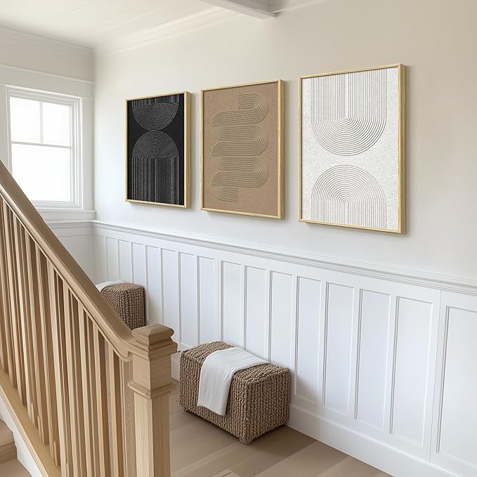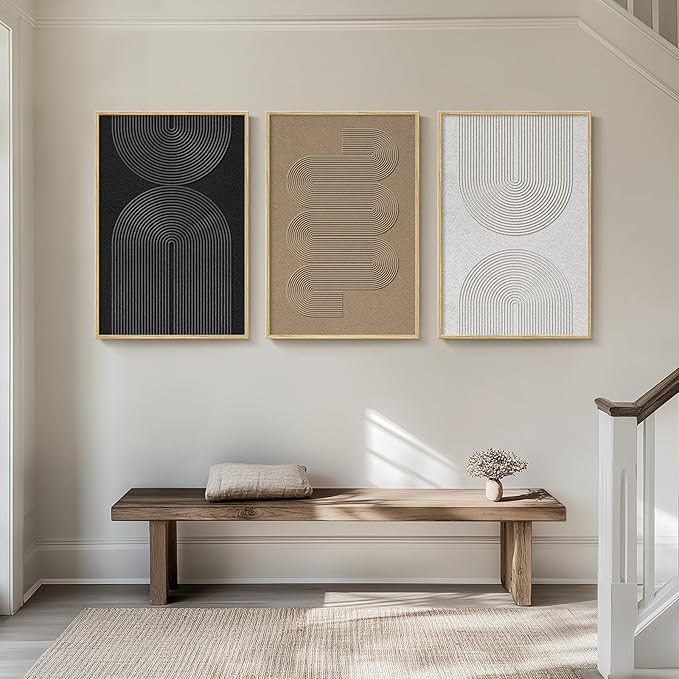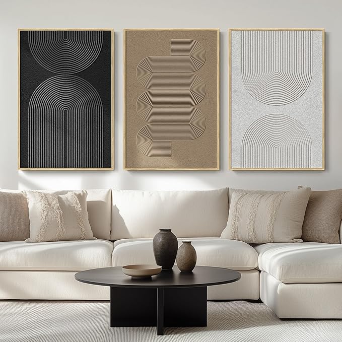 Large Framed Black and White Neutral Abstract Wall Art for Living Room, 3 Piece Boho Canvas Prints Paintings Artwork for Walls