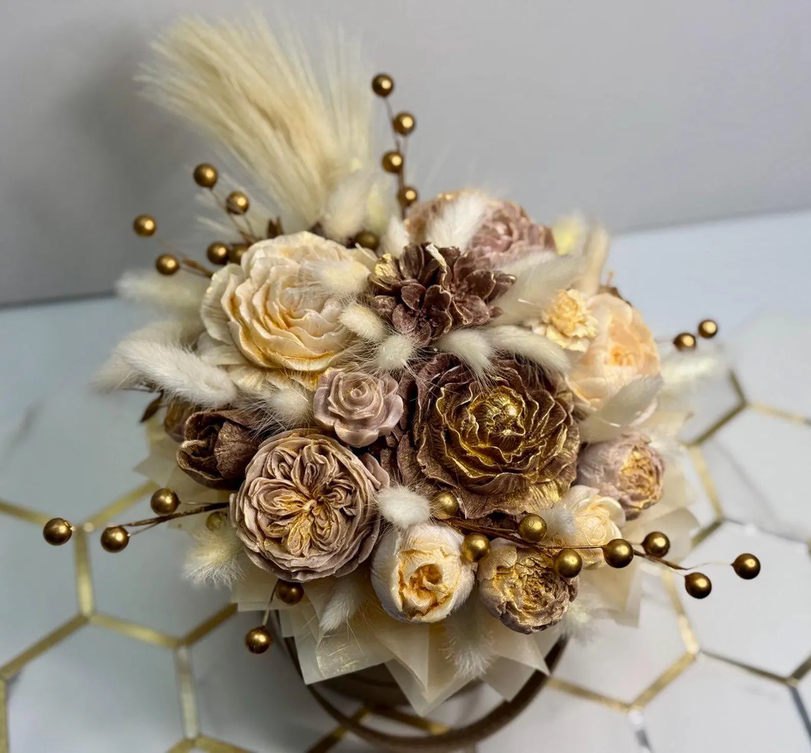 Bring elegance and warmth into your space with our luxurious scented flower candle arrangement.